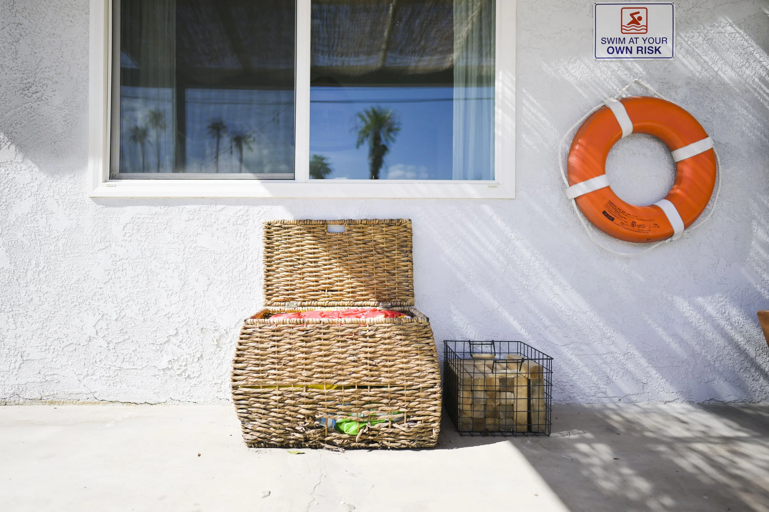 Floats and pump is inside the rattan basket in the patio underneath the dinning room window.