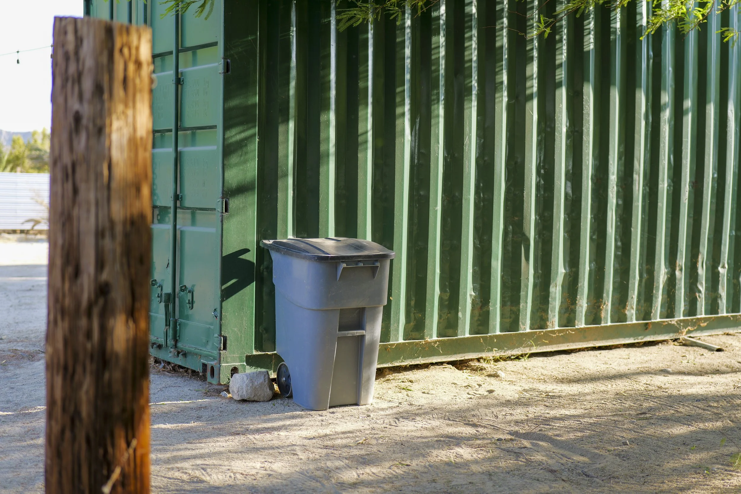 During your stay, you may empty your trash bins into the large bin adjacent to the green container.