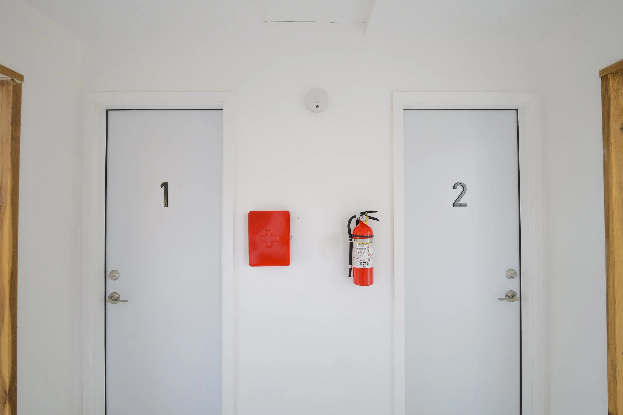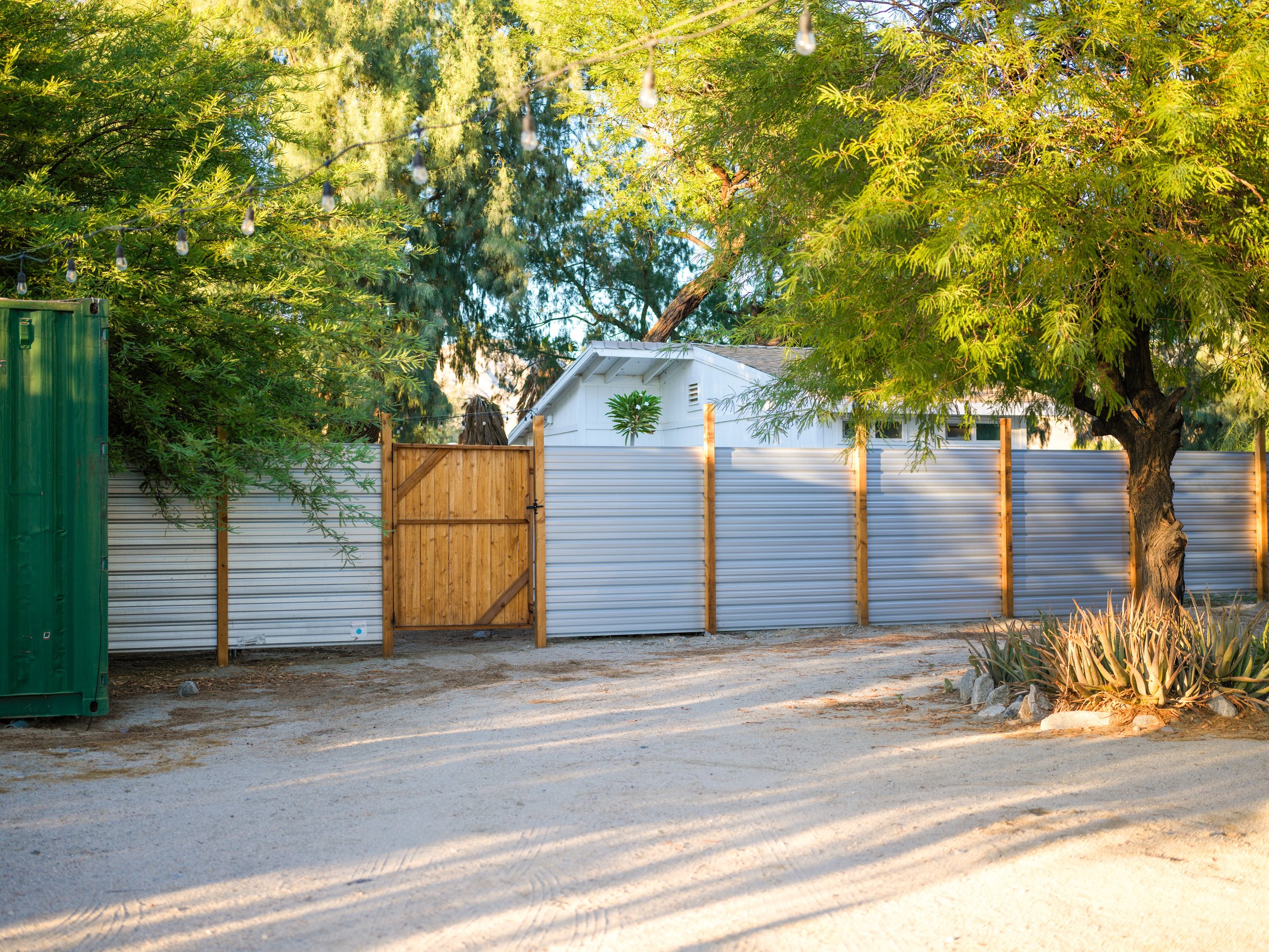 Pass this gate and you will see our main common area with the kitchen and bathrooms ahead to your right.